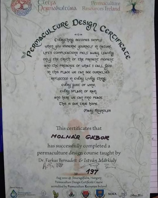 2020-ban az Életfa Permakultúra csapatával kezdtem a PDC-met (permakultúra tervezői képzést). Ez teljesen megváltoztatta bennem azt, hogy mi a permakultúra: sokkal több mint kertészkedés, sokkal inkább egy szemlélet ami szerint élünk, tervezünk.